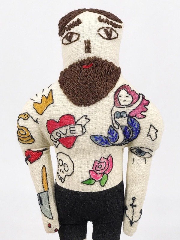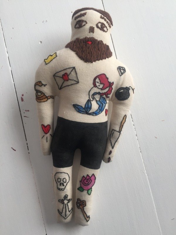 Pirata de tela, hecho en serigrafia, pintado a mano y detalles bordados a mano.